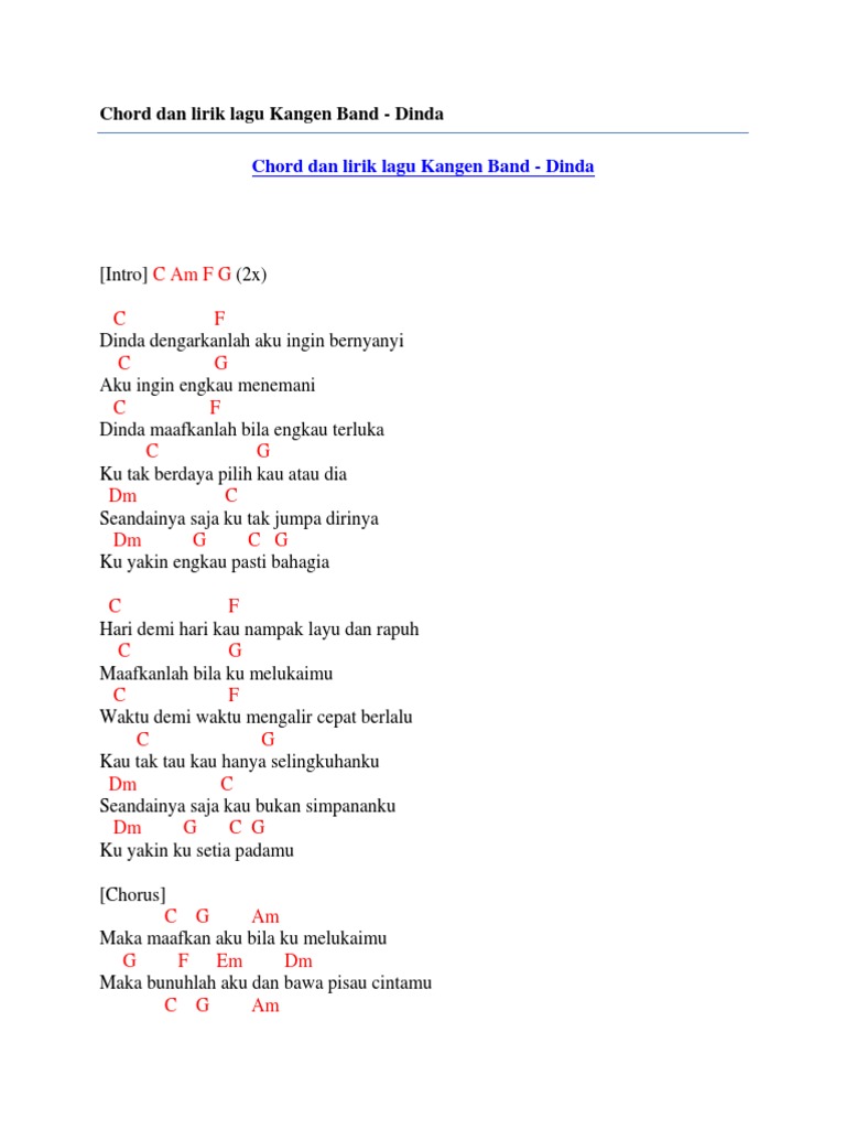 Chord Dan Lirik Lagu Kangen Band Dinda Pdf